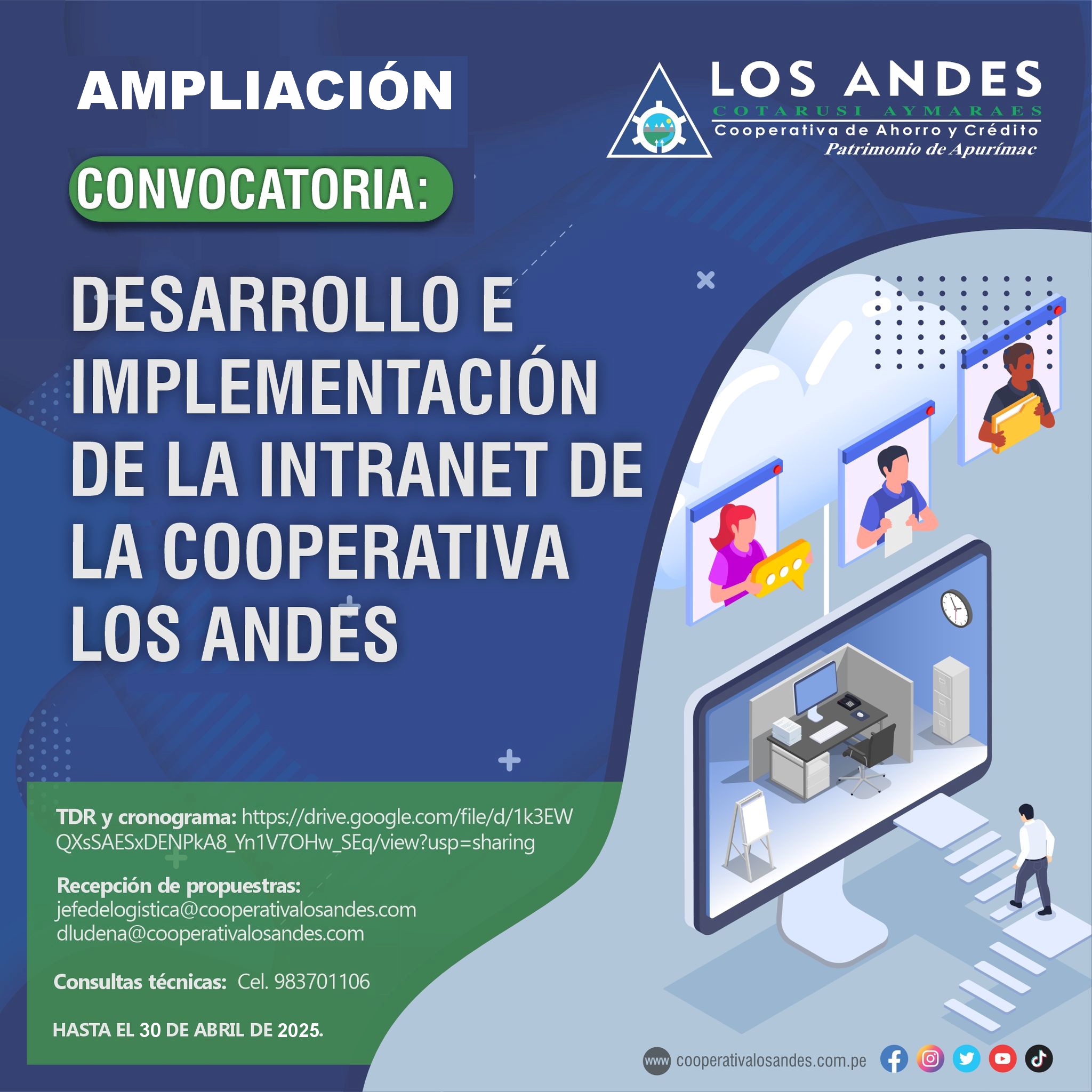 #actualidadenlosandes #cooperativalosandes #convocatoria Link TDR INTRANET: https://bit.ly/3RSpXSn