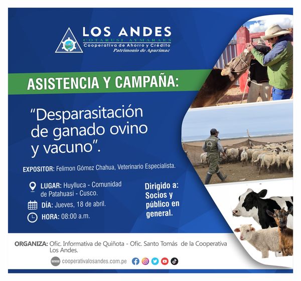 ATENCIÓN SOCIOS Y PÚBLICO EN GENERAL de LAMBRAMA – ABANCAY Y ANTABAMBA, participa de nuestras asistencias técnicas programadas.