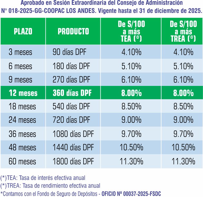 TARIFARIO CAMPAÑA COOPAC LOS ANDES